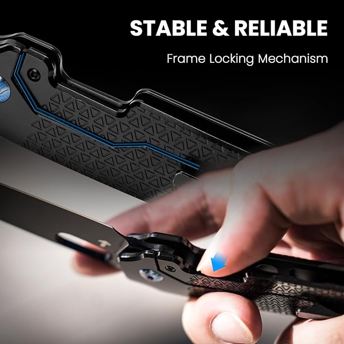 - 【Sharp Blade】High-performance blade made of premium S35VN steel ensures exceptional corrosion resistance, sharpness, and precision cutting for various outdoor activities such as camping, hiking, hunting, and fishing. Innovative frame flipper lock and thumb hole design allow for two smooth and efficient ways to open the knife, making it a practical and convenient everyday carry tool for both left and right-handed users.