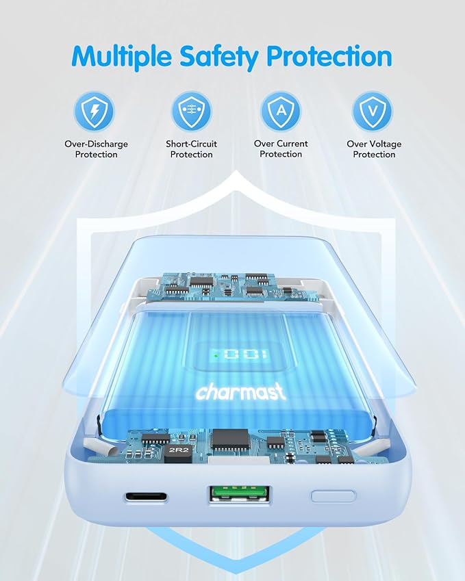 - Looking for a portable power bank that's both powerful and compact? The Charmast Power Bank fits the bill. Weighing just around 12.99 ounces, this slim-profile charger offers a comfortable grip and fully rubberized cover for added protection against scratches and drops.