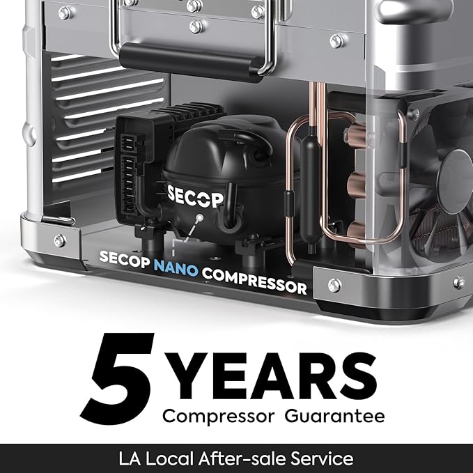 - [SECOP Nano Compressor] This 12v freezer Cooling range from -4°F to 68°F(-20℃~20℃) to meet all your freezing or refrigeration need. MAX mode for fast cooling and ECO mode for energy saving. With the SECOP smallest compressor, it weighs only 22.8 lbs, but is very consistent in performance.