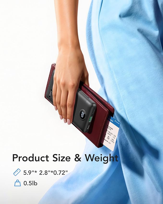 - [Slim & Compact Design] With dimensions of 5.9 x 2.8 x 0.7 inches and a weight of 8 ounces, this product's slim and compact design enhances on-the-go convenience without adding extra weight.