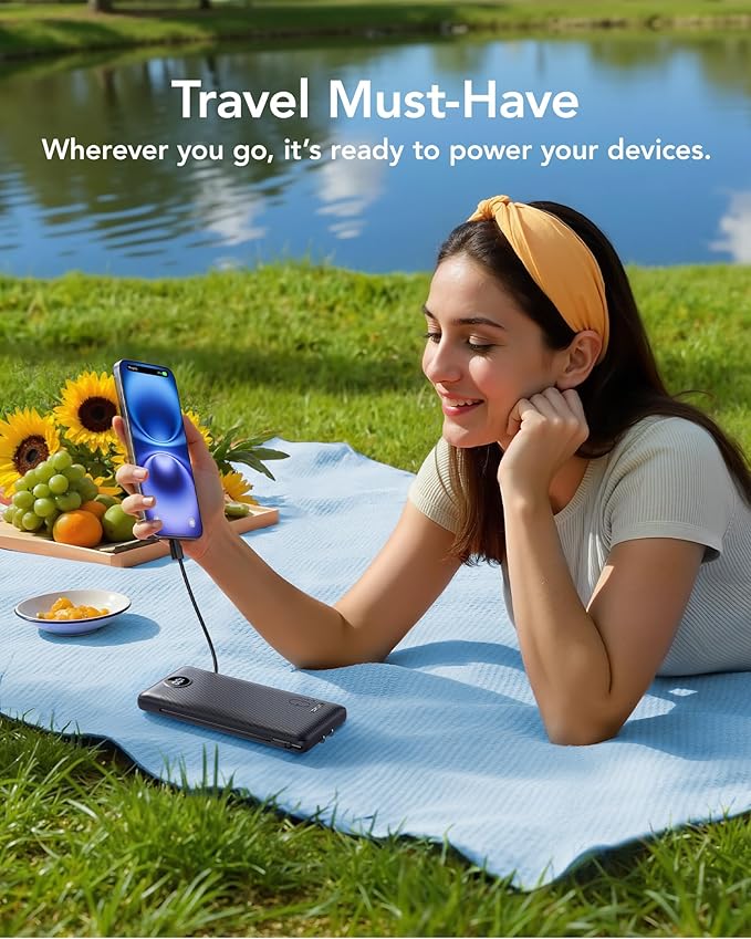 - [Supports Up to 22.5W Fast Charging] This portable charger with cables supports 22.5W fast charging through its USB port. Additionally, it boasts built-in cables supporting PD 20W and QC 18W, ensuring efficient and rapid charging capabilities.
