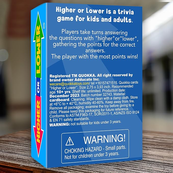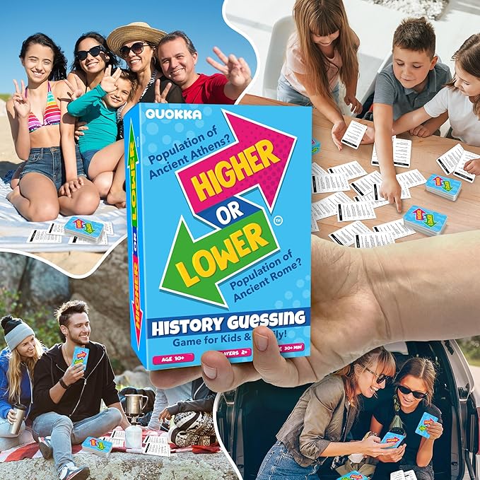 QUOKKA History Board Game for Kids 10-14 Year Olds - Family Card Game for Kids and Adults - Higher or Lower | Guess Fun Questions | Easy to Learn | 2 + Players - Challenge Game for Family Night