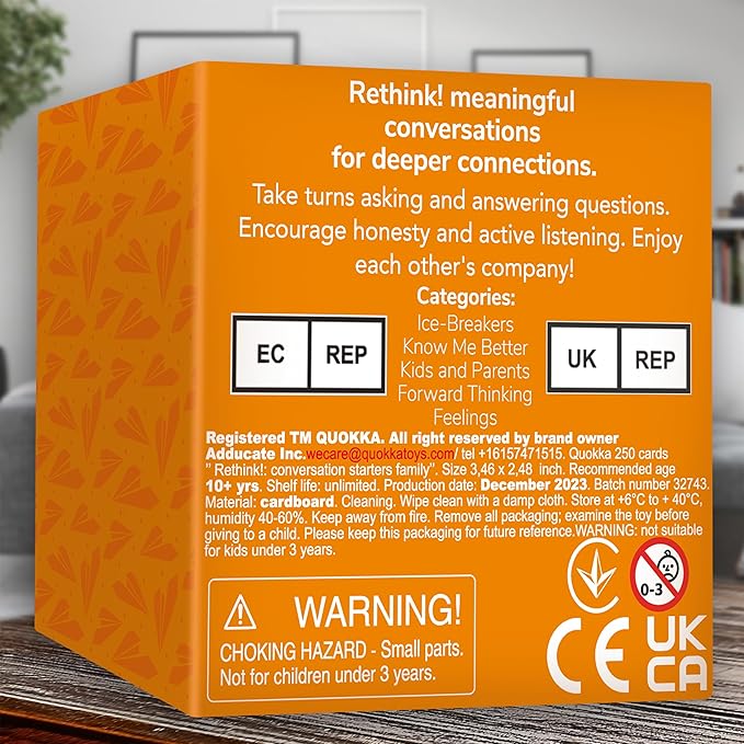 - 5 CONVERSATION THEMES: a variety of conversation cards include Ice-Breaker, Know Me Better, Forward Thinking, Emotions, and Kids and Parents;
