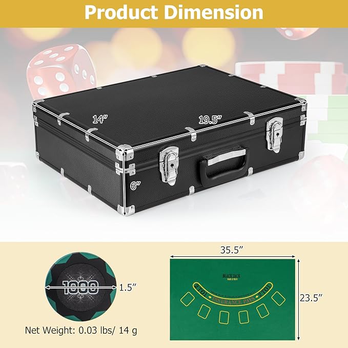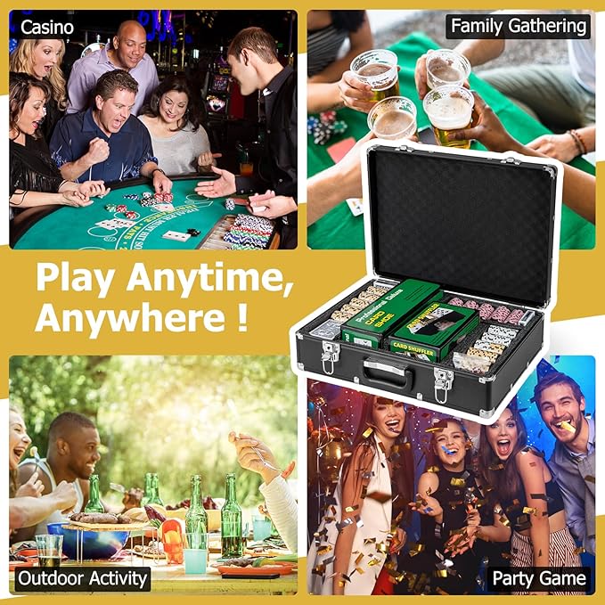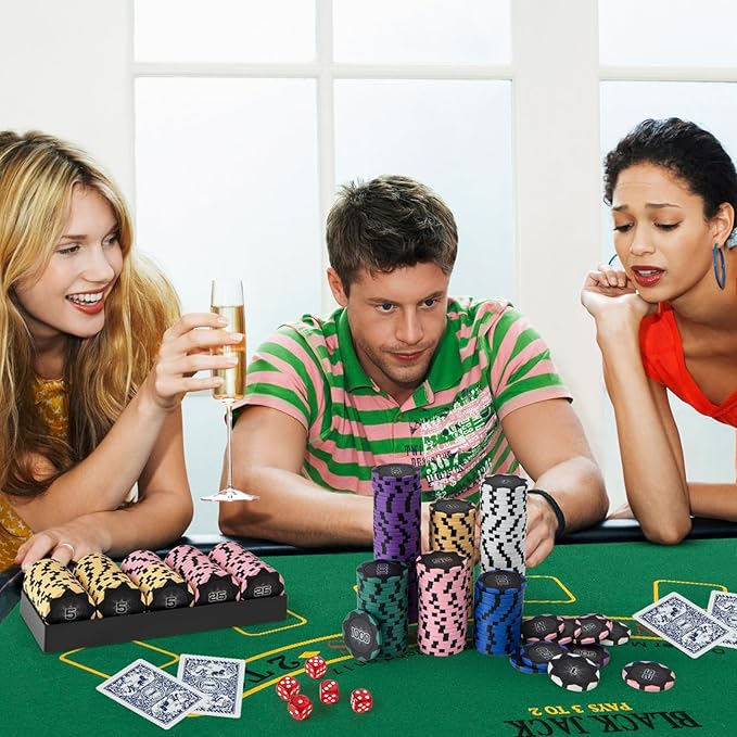 - 🃏【Game for Various People】 The casino poker chip set is an ideal choice for your family and friends to enjoy classic poker games. It provides unforgettable memories and endless fun for your family and friends. It’s suitable for Texas Holdem, Blackjack, tournaments, daily gatherings, card clubs, etc.