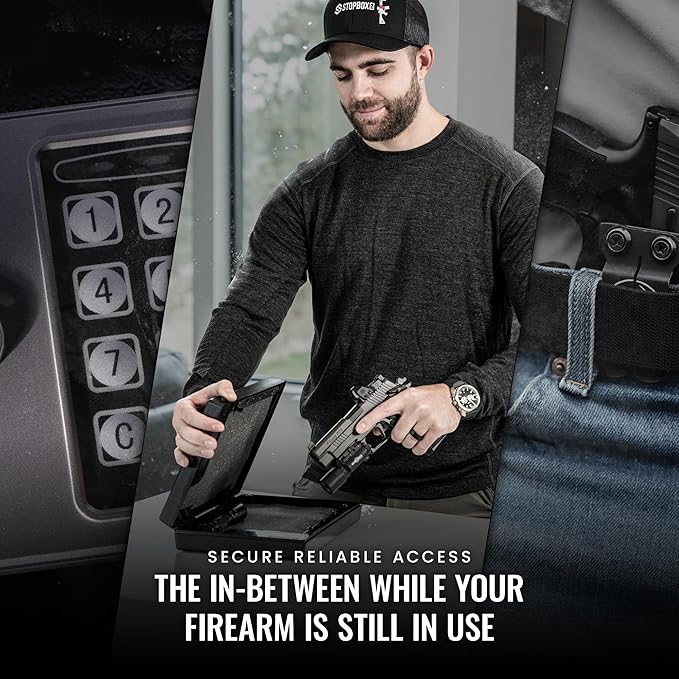 - âăTRUSTED BY 500,000+ GUN OWNERSăBacked by thousands of satisfied firearm owners, the StopBox Pro is a proven gun safe alternative for secure, instant access. Ideal for handguns, BB guns, air-soft, or tasers. Covered by a 30-day money-back guarantee for peace of mind.