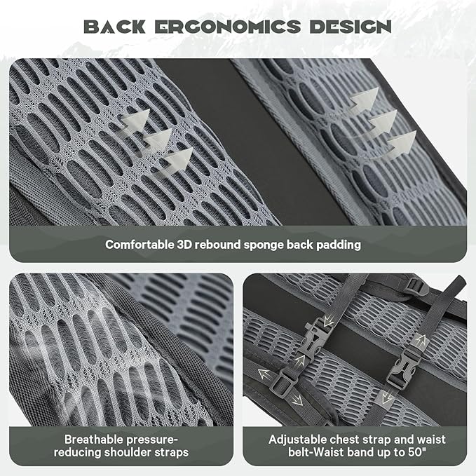 - Hands-Free Leakproof Water Bladder:Stay hydrated on the go with a 2-liter bladder and bilateral hose outlets. The large opening design of the bladder ensures easy filling and cleaning. The separate insulated compartment provides hours of cooling with ice packs. The bladder is replaceable and supports up to 3 liters.