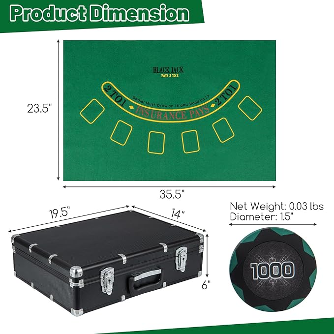 - 🃏【Play Anytime, Anywhere】Bring the excitement of a casino to your parties, family gatherings, outdoor activities, or any other social event with our complete poker chip set. It's the perfect choice for 4-10 individuals aged 10+ years old to fully enjoy their game time.