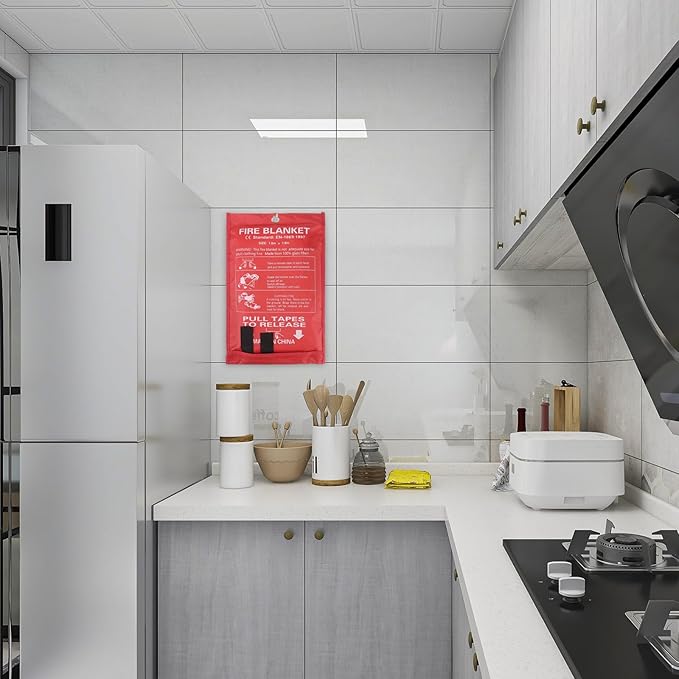 - ✅HOME FIRE BLANKET KIT: Fire proof blankets and resistant to high temperatures. Hang kitchen fire blanket on wall of a house or boat. Use as emergency survival blanket or fireproof blanket for grill. Safe to drape over adults, children, or pets.