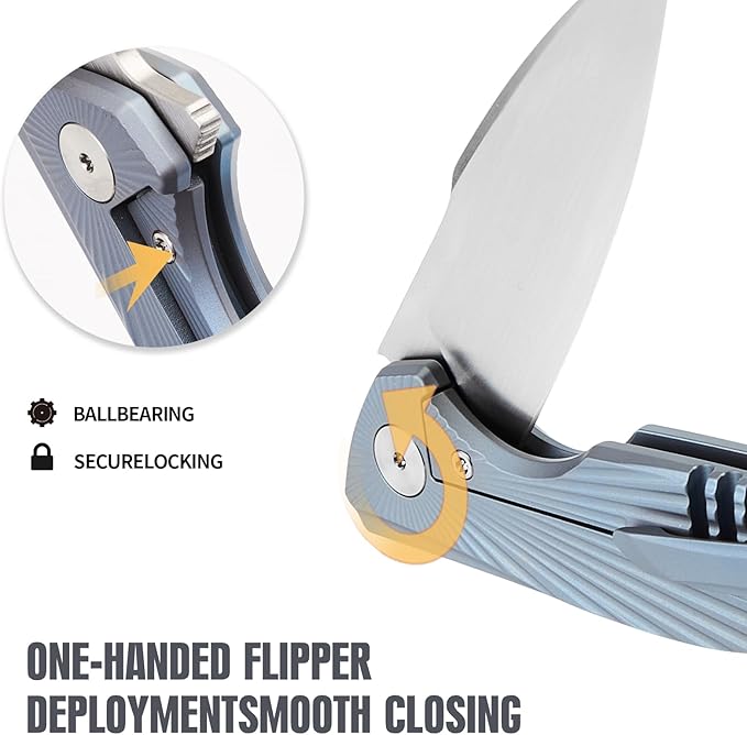 - Ergonomic Design: The handle of this folding pocket knife is crafted with a combination of titanium, providing a comfortable grip and optimal control during use.