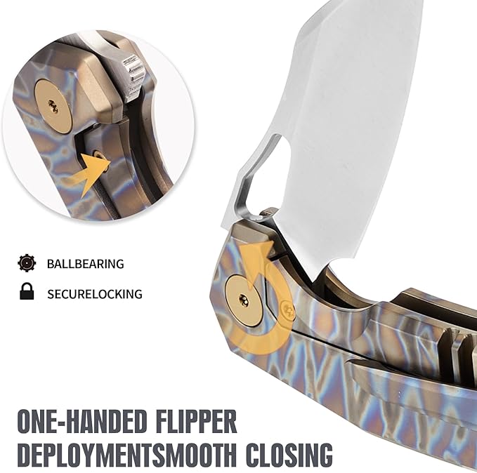 - Ergonomic Design: The handle of this folding pocket knife is crafted with a combination of titanium, providing a comfortable grip and optimal control during use.