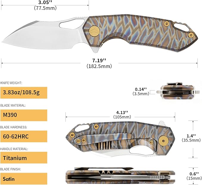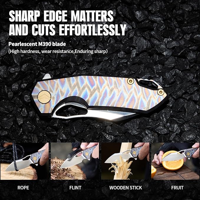 - Premium Quality: Crafted from high-quality M390 steel, our folding knife offers exceptional hardness, sharpness, superior edge retention, and corrosion resistance, ensuring long-lasting durability and reliable performance.