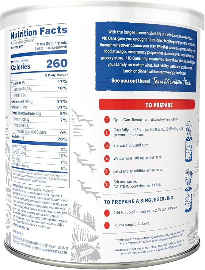 Mountain House Freeze Dried Breakfast Skillet #10 Can ??8 Servings per Can ??Gluten-Free ??30-Year Shelf Life ??Emergency, Survival, Camping, Hunting & Backpacking Canned Food ??Pack of 6