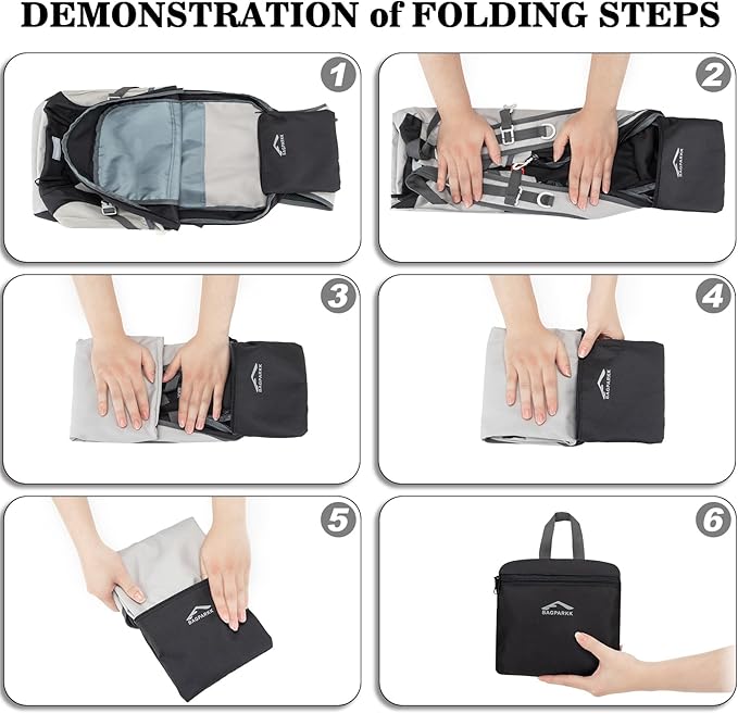 • Foldable & Lightweight:The Foldable backpack weighs only 0.88 pounds and can be easily folded into a small one for storage. The folded size is only 7×6×2inch, which is not bigger than a book and takes very small space.To avoid overweight charge, simply unfold from your checked bags and use it as a carry on for your excess baggage