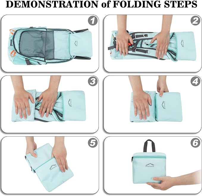 • Foldable & Lightweight:The Foldable backpack weighs only 0.88 pounds and can be easily folded into a small one for storage. The folded size is only 7×6×2inch, which is not bigger than a book and takes very small space.To avoid overweight charge, simply unfold from your checked bags and use it as a carry on for your excess baggage