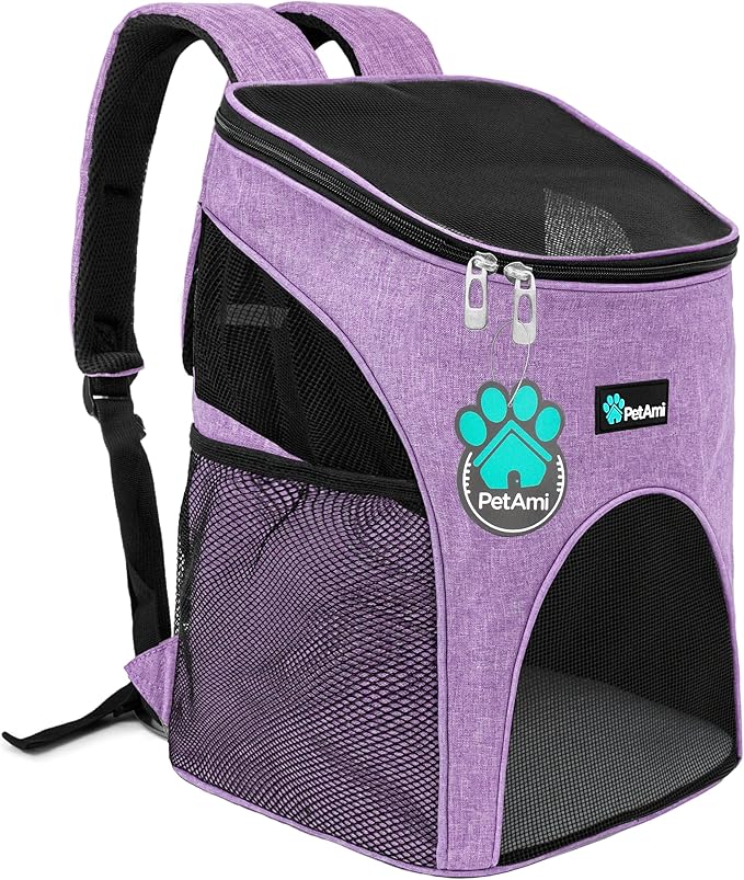 PetAmi Small Dogs and Cat Backpack Carrier, Airline Approved Pet Backpack Carrier, Ventilated, Safety Strap, Buckle Support Designed for Hiking Travel Camping Outdoor, Max 18 lbs (Heather Purple)