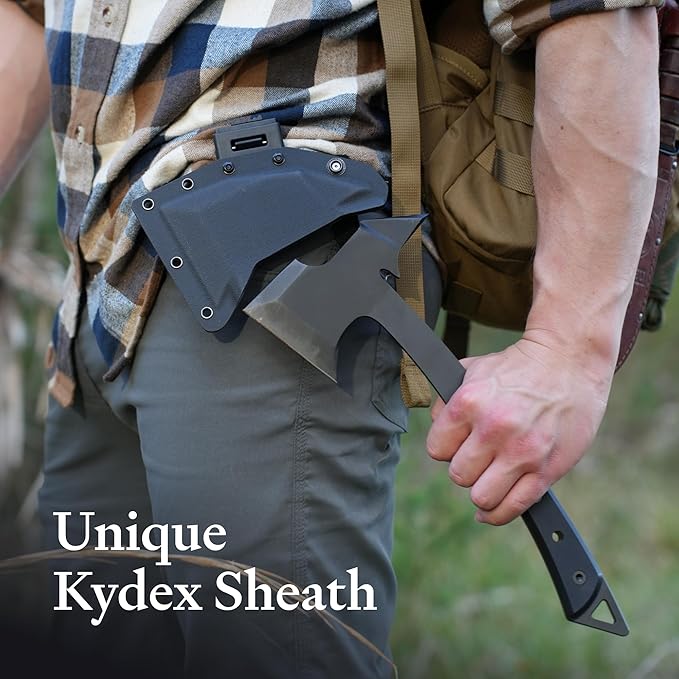 - Complete Package: Includes a kydex sheath with a matte black finish for convenient storage and transport, making it an essential tool for any outdoor enthusiast.