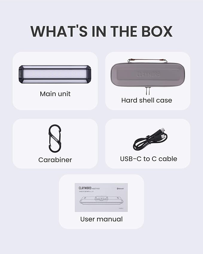 Claymore 3Face Pro L (Black) - Rechargeable Surface Area Camping Light for Trucks, Overlanding, Tents, Canopies, Outdoor Events, Street Vendors, Work Lighting, Long-Lasting Battery, Hanging Design