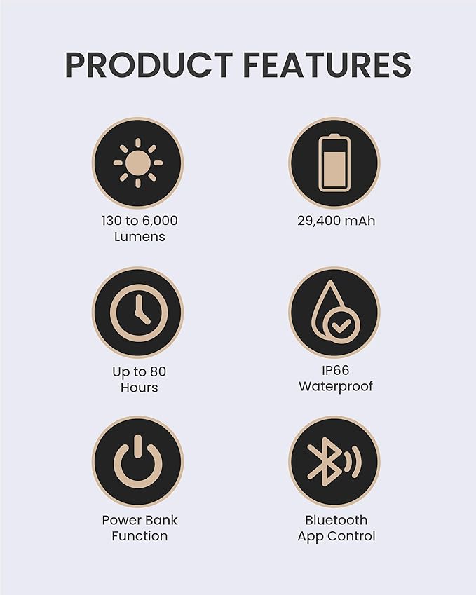 - MASSIVE POWER SUPPLY - With a robust 29,400mAh battery, the 3Face Pro L not only lights up the night but also serves as a potent power bank, ensuring all your devices stay charged during extended outdoor adventures.