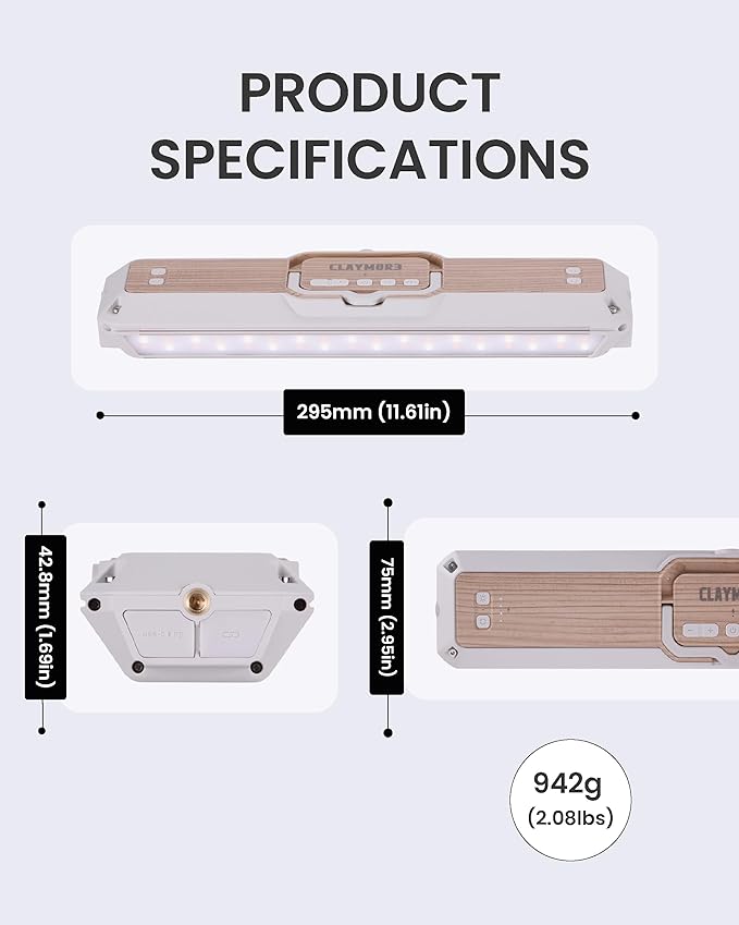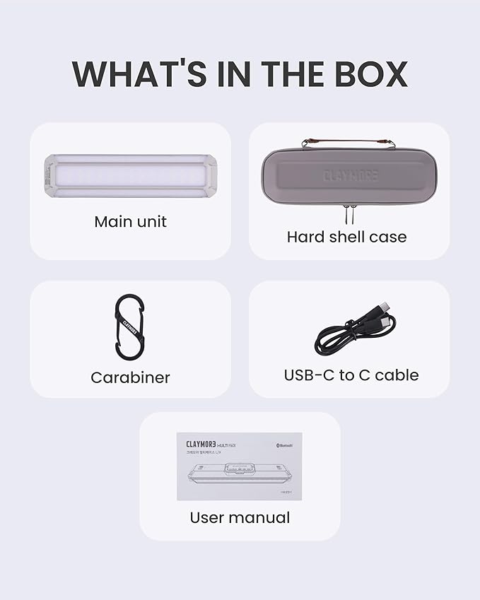 Claymore 3Face Pro L (Light Gray) - Rechargeable Surface Area Camping Light for Trucks, Overlanding, Tents, Canopies, Outdoor Events, Street Vendors, Work Lighting, Long-Lasting Battery, Hanging