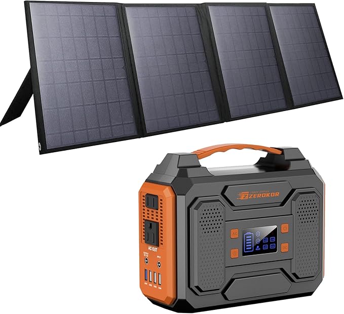 - 🌍ZeroKor Solar Generator Bundle includes a Portable Solar Panel 40W and a Portable Power Station 300W for Home Use Camping Travel Emergency Hunting Outdoor