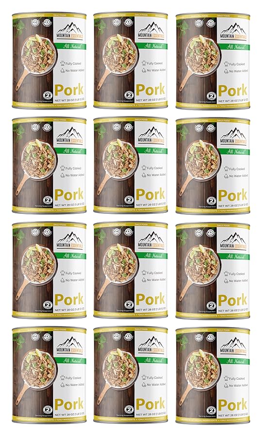 MOUNTAIN ESSENTIALS Canned Pork 28 Oz – Fully Cooked, Ready to Eat – Pantry Staple Canned Meat for Everyday Meals, Emergency Survival & Bulk Food Storage – 5-Year Shelf Life – Made in USA – 12 Pack