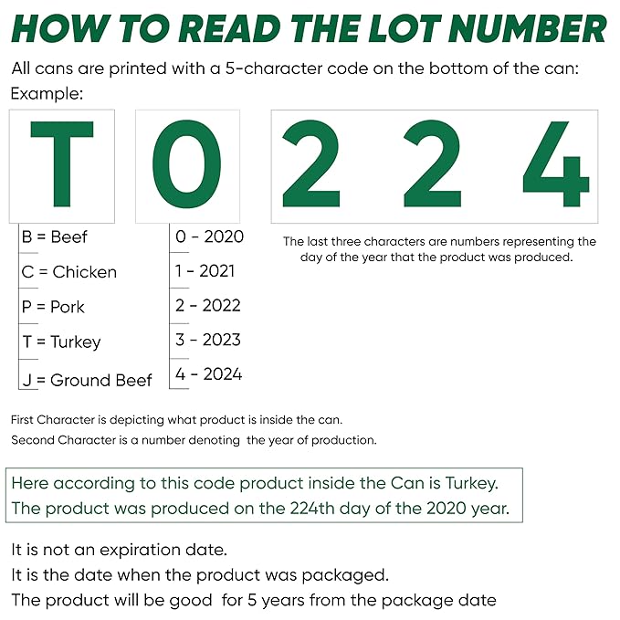 - NOTE:- This Item does not have expiration dates on the product but cans are printed with a 5-character code on the bottom of the can in order to identify the product inside the can and to identify the date of production. If there are any concerns about shelf life or expiration please do not hesitate to reach out.