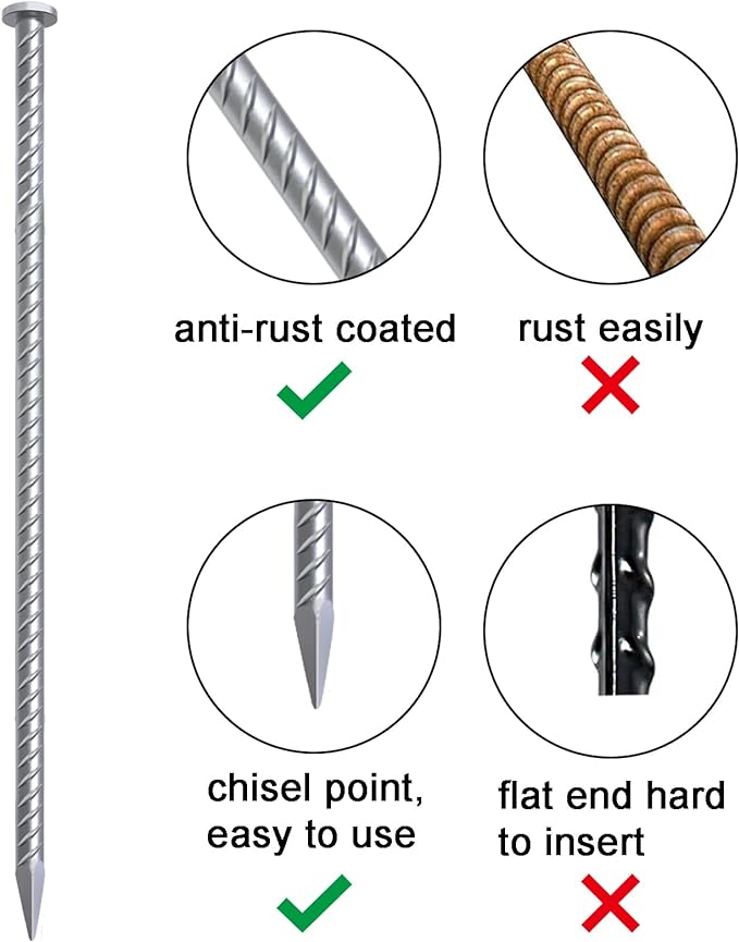 - Galvanized & Sturdy Steel - Landscape timber spikes 12 inches are made of threaded steel with a galvanized surface coating installation, firmly in various hard surfaces. Long-lasting design is weather-resistant and rustproof