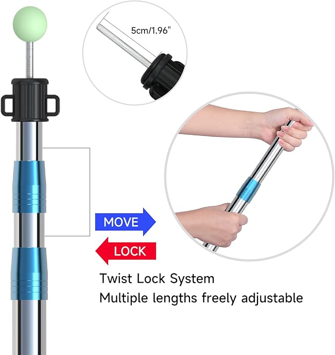 - 【Flexible Length Design】Adjustable tent poles extend from 37 inches/3 Feet to 86.6 inches/7.2 Feet in length, so you can position them at any length in between. Rotate to the left to lock the length, rotate to the right to unlock.