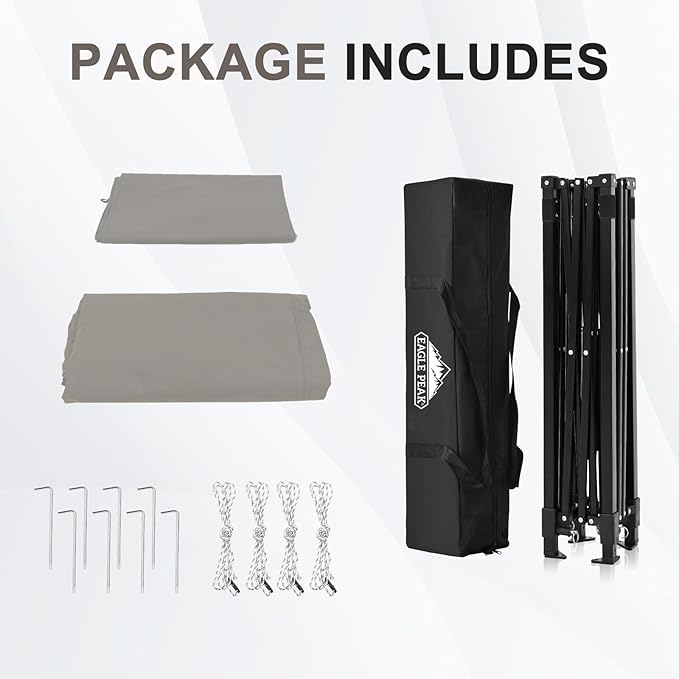 - EAGLE PEAK PROMISE: EAGLE PEAK offers a 1-year limited after sale protection from the original date of purchase. Unlike many other canopy manufacturers, EAGLE PEAK offers this for our frames, canopies and bags! If you have any other questions, please contact our professional service team .