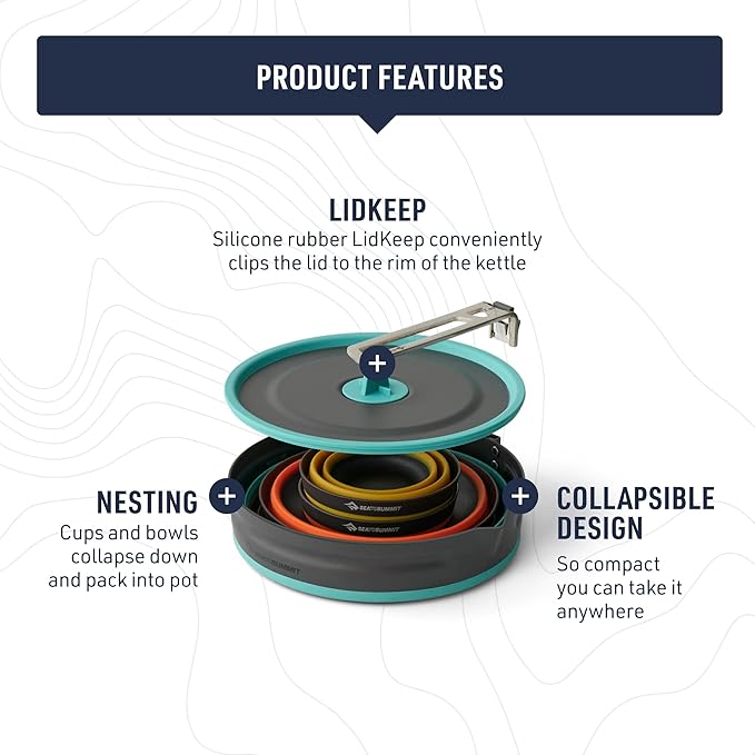 Sea to Summit Frontier Ultralight Collapsible One Pot Cook Set, 2-Person (1 Pot, 2 Bowls, 2 Cups)