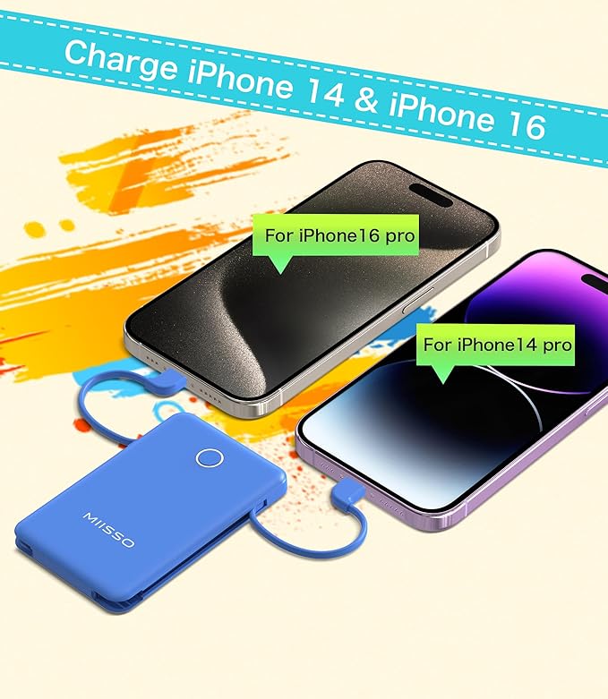 - Credit Card Size: It is the slimmest and the smallest of MIISSO portable chargers with cables, only 0.27lb(122g) and its body like a credit card. The lightweight design lets you take it out without pressure. It's slim enough to put it in your pocket or in your handbag