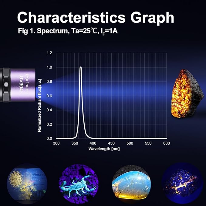 - [Wide range of applications and high efficiency] Pure 365nm high-power ultraviolet rays are used in: UV glue curing, ore, fluorescent agent, urine stain and stain detection, currency identification, official documents, etc., Which can bring you higher efficiency and save you valuable time