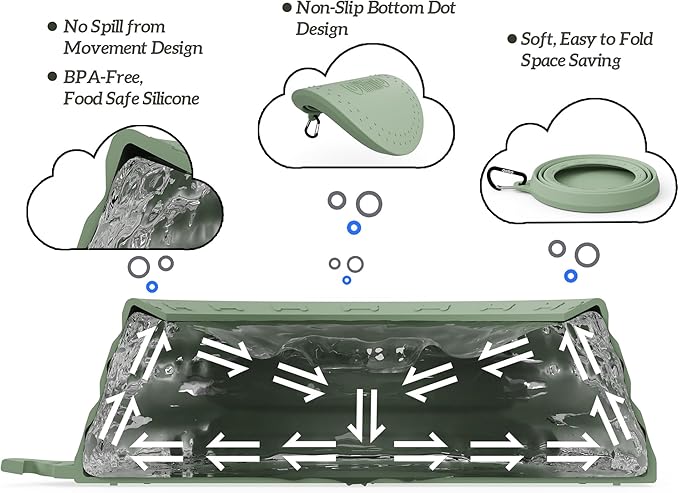 - ULTRA STABILITY: Our portable travel bowl features a tapered shape that offers an exceptionally low center of gravity, ensuring unparalleled stability in most situations. Say goodbye to tipping over when you take your beloved pet on the go.