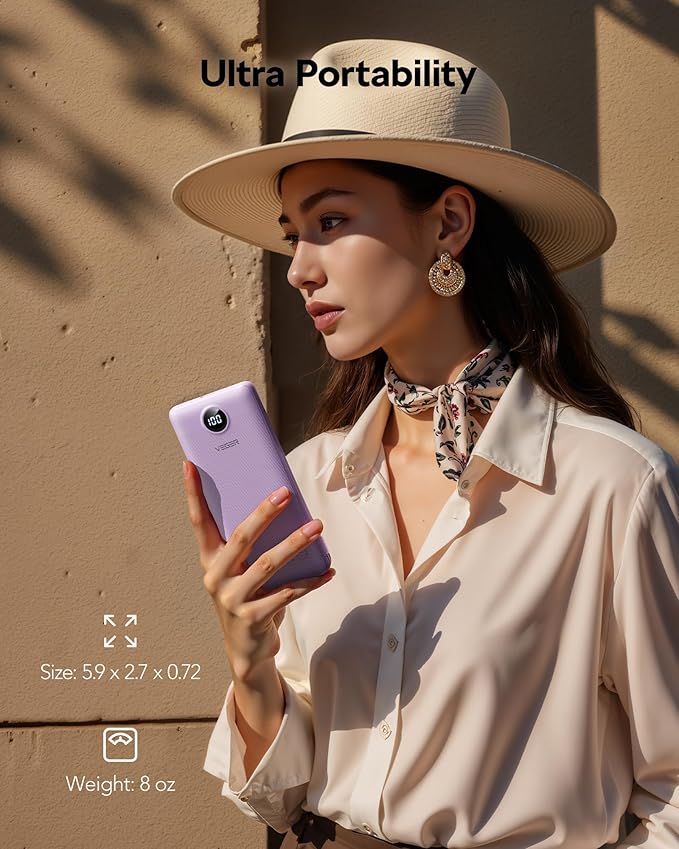 - Powerful but Ultra-Portable: 10,000mAh in a Slim Design. Engineered with a remarkably slim and light body (only 0.72” thin and 8 oz), this charger packs a massive 10,000mAh capacity, which avaliavle for carrying on the plane. Get up to 1.8 full charges for your iPhone 17, 1.6 for your Samsung S25, a full charge for your iPad Mini, and 40 charges for your AirPods. Experience heavyweight power that fits perfectly in your pocket or bag for all-day use.
