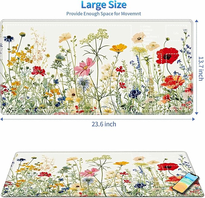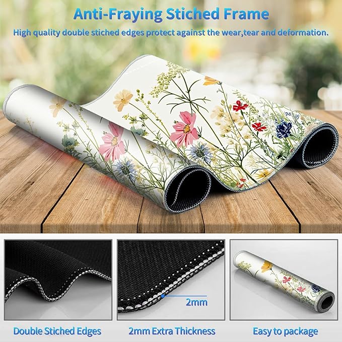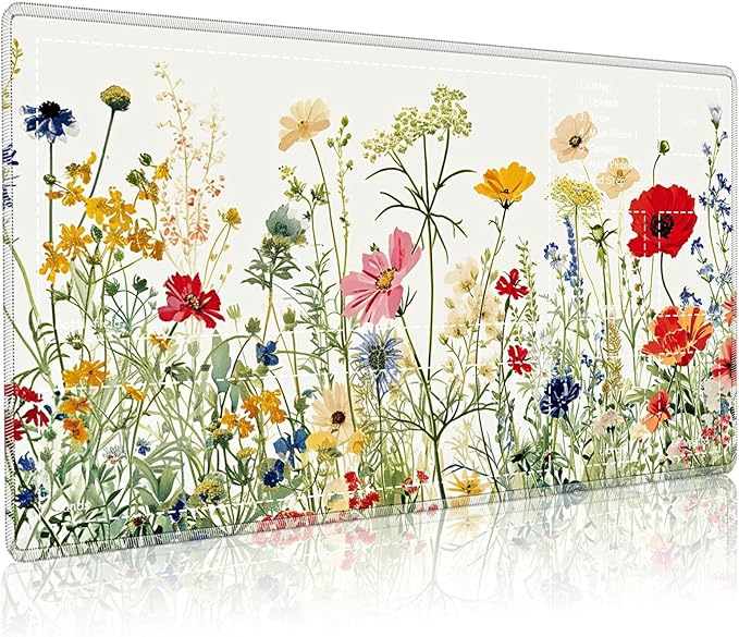 Playmat for MTG with Zones, 24 x 14 inches Game Play Mat for MTG TCG, Trading Card Game Play Mat Desk Mats with Stitched Edges Non-Slip Base, Wildflowers
