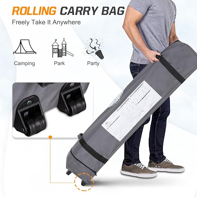 - COMPACT AND PORTABLE: Easily take this outdoor tent anywhere with its convenient wheeled bag which fits into most car trunks. Easily bring it along to tailgate and backyard parties, the beach, camping, the park or wherever your fun begins