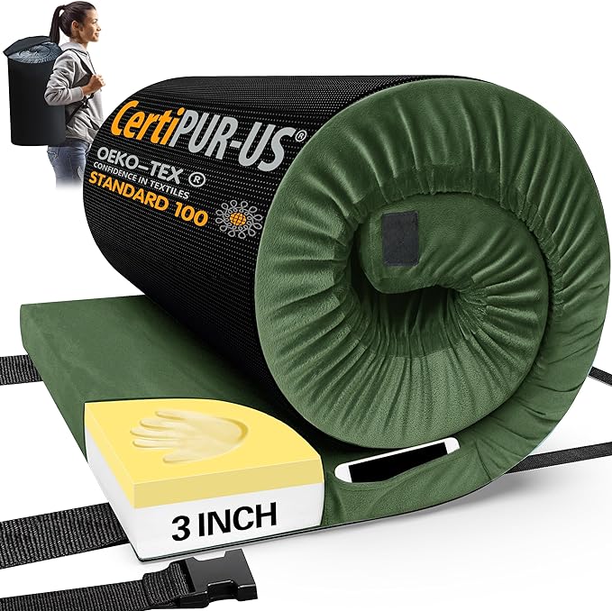 CYMULA CertiPUR-US Memory Foam Camping Mattress Pad, Portable Foam Sleeping Pad for Camping, Roll up Sleeping Mat for Adults Guest Floor Bed for Sleepover, Car, Tent SUV Cot Mattress