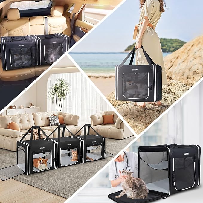 - ✅【CAT CARRIER FOR 2 SMALL PETS】--The size of the combinable cat carrier is 18x17x17inch (45.7x43x43cm). which allows a large cat or a medium dog or 2 small pets to use together (Maximum weight 40LBS). Single cat carrier can be freely combined into any number of large pet carrier with the zippers on both sides. Perfect for families with multiple pets.