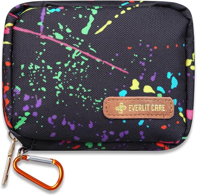 EVERLIT Mini Rescue Pack | 105 Medical Essentials Organized in Portable Storage Bag | Pocket Size Kids First Aid Kit with D Ring | Small Family-Friendly Travel Medical Kit (Splatter)