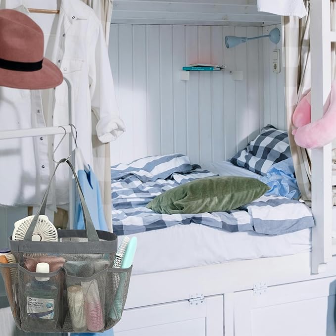 - 💪 【𝐃𝐮𝐫𝐚𝐛𝐥𝐞 & 𝐏𝐨𝐫𝐭𝐚𝐛𝐥𝐞】This mesh shower caddy basket is constructed from sturdy 600D polyester and tear-resistant Odorless mesh materials, and the reinforced stitching further ensures exceptional durability. This dorm must haves for college students girls & boys is lightweight, collapsible and easy to carry. The 9-inch long shoulder strap of this college essentials for students adds a significant comfort factor to its transportation.