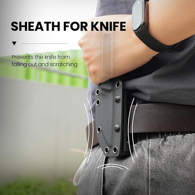 - Kydex Sheath: Hunting knife with the high-quality sheath, you can retain this sharpness for longer; Multiple carrying methods, lanyard hole and high-strength lightweight kydex material sheath for easy portability