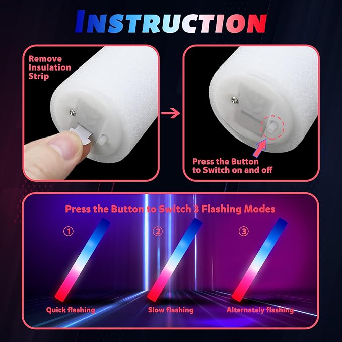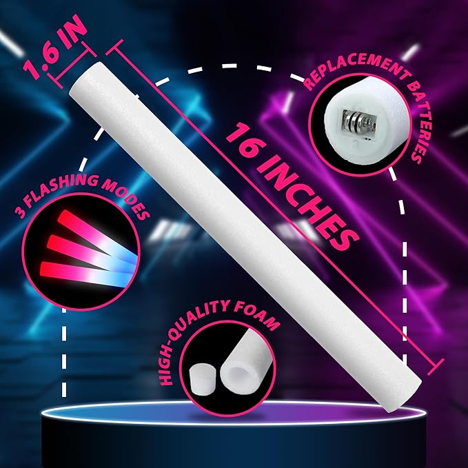 - Premium Quality: Our Foam Sticks are made from high-quality materials and feature long-lasting lights that shine brilliantly throughout your celebrations, ensuring a vibrant and enduring glow.