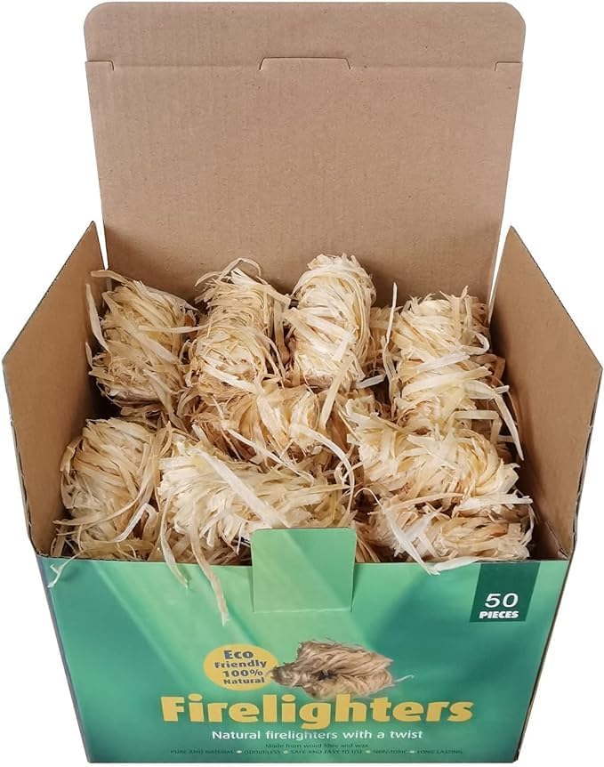 50 PCS Fire Starter for Fireplace, Waterproof - Natural Fire Starters, for BBQ, Pizza Oven, Fire-Pit, Campfires, Camping Charcoal Starter, Quick Light Wood Charcoal Firestarter
