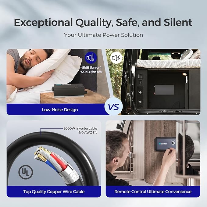 - 【Quiet operation】Silent 2000 watt inverter, boasting a noise level of less than 51dB, all electronic devices run smoothly without any noise interrupting the peaceful ambiance.