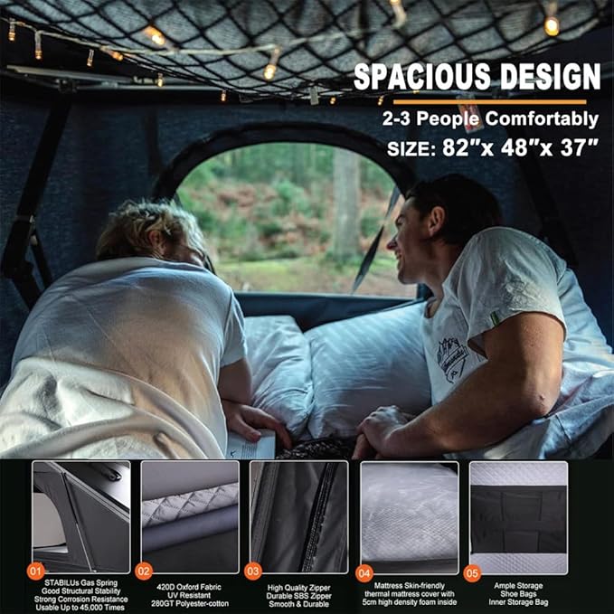 Rooftop Tent Hard Shell - Outdoor Car Camping 2-3 Person Truck, Sedan, SUV, Waterproof, Teardrop, Windproof, Sturdy, Easy Up Roof for SUV Road Trip Essentials Overland, Large, Black (Standard version)