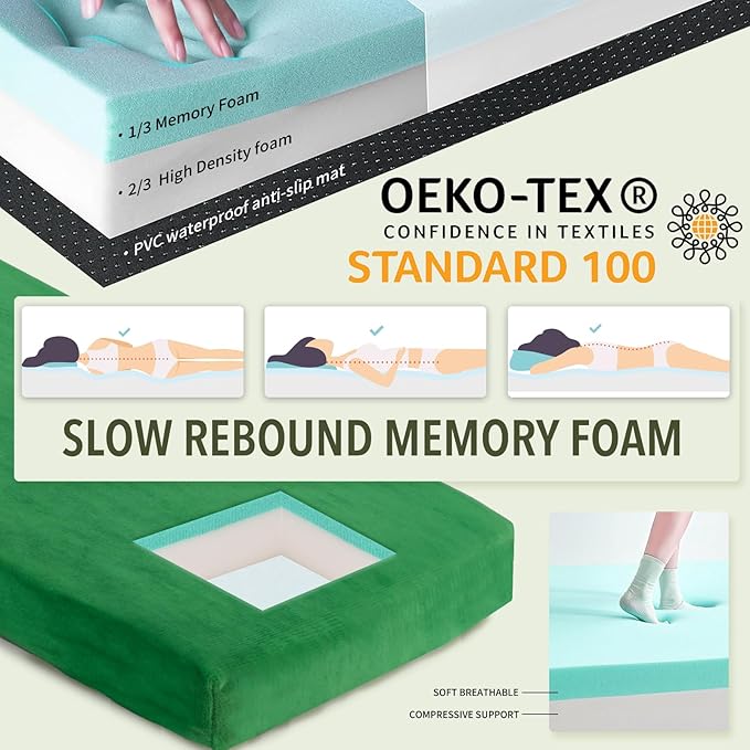 - Memory Foam Mattress:3in thick camping mattress is by 1" memory foam and 2" high-density support foam composition,memory foam Wrap your body,Soft and comfortable,Support foam Support your body at the bottom to prevent your body from contacting the ground, and allow your body to get a full rest even on hard ground