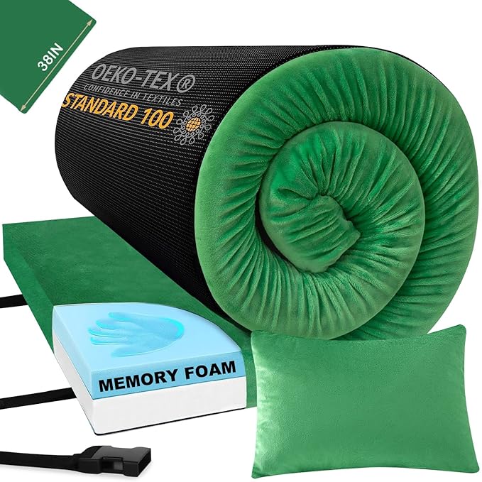 Sleeping Pad,3-inch Thick Memory Foam Camping Mattress,Portable Roll-Up Mat for Car/Tent/Floor/Cot/Travel,Comfortable Pad for Guests Sleepover