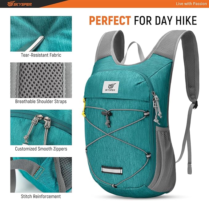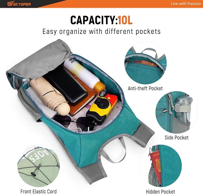 SKYSPER Foldable Hiking Backpack - 10L Small Lightweight Daypack Breathable Travel Backpacks for Men Women