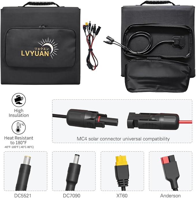 LVYUAN 120W Portable Solar Panel Foldable Blanket, Monocrystalline Huge Power Solar Panel, Solar Cells 23% High Efficiency for Outdoor Adventures Power Station Camping RV Solar Generator