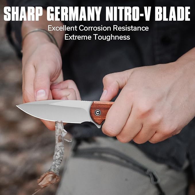 CIVIVI Primitrox Folding Knife for EDC, Flipper Pocket Knife with 3.48" Nitro-V Blade Wood Handle for Everyday Carry C23005A-3